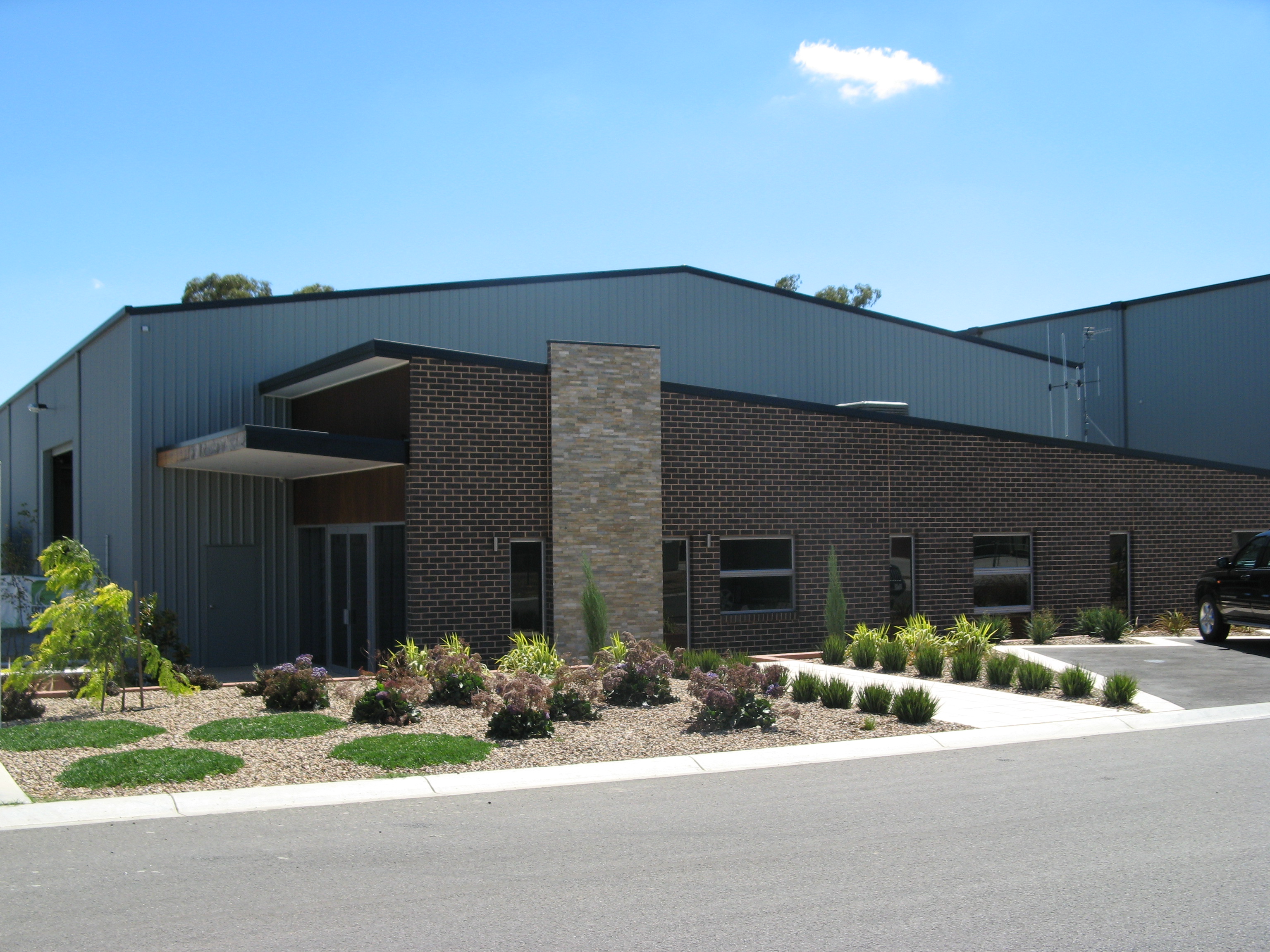 Whether you require an industrial warehouse, industrial showroom building or a factory, our steel sheds meet the most rigorous building requirements and include features such as precast concrete panel walls, sky and wall light sheeting, mezzanine floors, insulation in roof and walls, canopies – cantilever or standard design – a broad range of different sized roller doors, shutters, provision for overhead cranes and personal access doors.